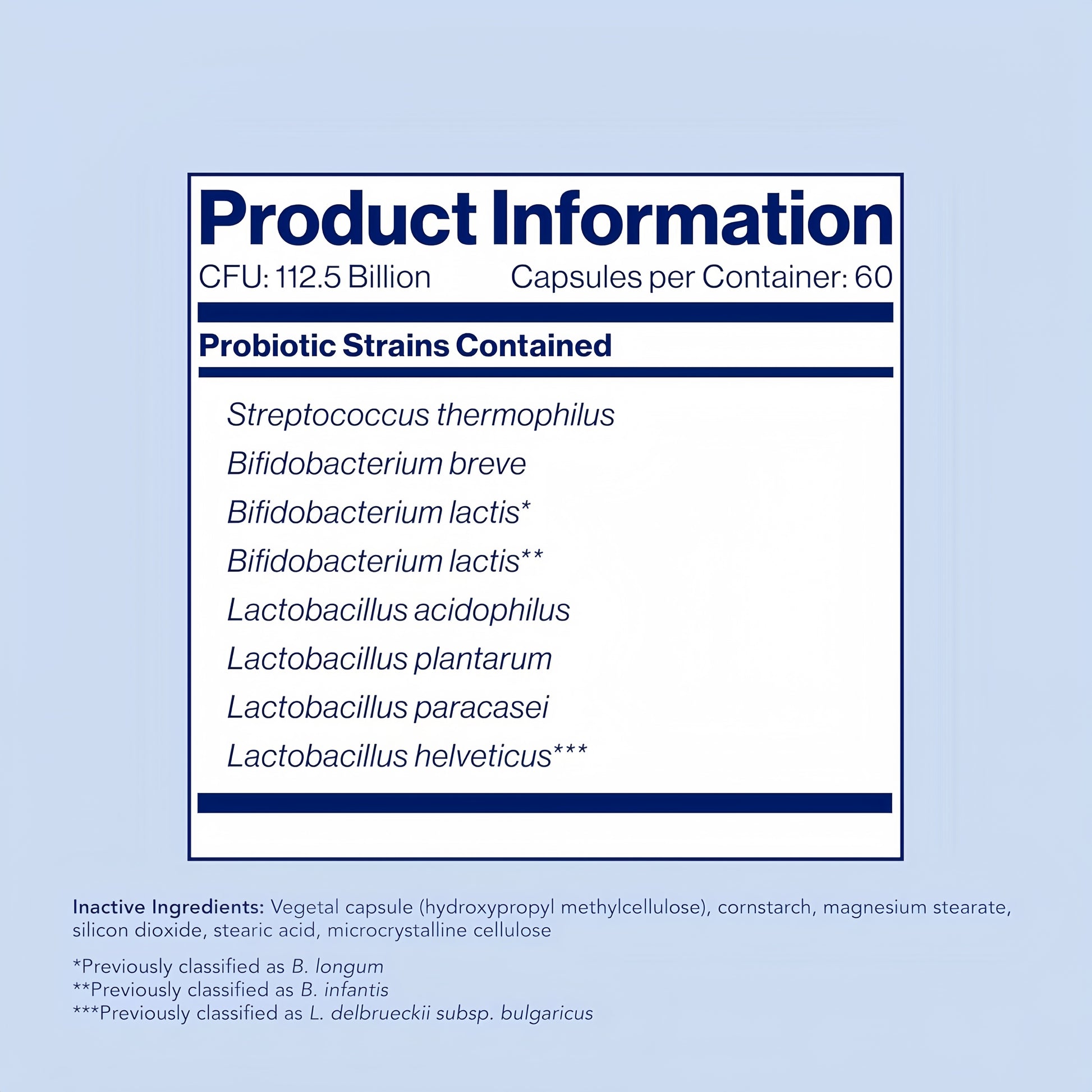 • The 8-strain formula is designed to be gentle while being highly potent (112.5B CFU)